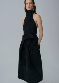 Halter top made from fine plisse fabric. It features an open back and a high neckline finished with a narrow stand collar. The collar fastens at the back with fabric-covered buttons. Designed to be slipped on over the head, this piece offers a sleek silhouette with rich texture and modern minimalism. Details ID: 224925 Shell 100% Polyester Lining 90% Silk 10% Elastane Sizing This piece fits true to size. We recommend you get your regular size. Model is 177 cm and is wearing a size 34.