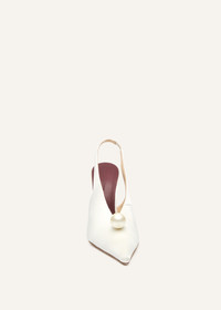 Pearl slingback pointed heel in cream satin