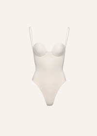 As part of the first Magda Butrym swimwear collection, a retro one piece swimsuit with a high leg, bustier underwire bra, and thin straps, which converts into a bodysuit. Details ID: 810521 Shell 75% Polyamide 25% Elastane. Sizing This piece fits true to size. We recommend you get your regular size. Model is 180cm and is wearing a size 34.