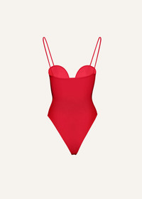 A best-selling style launched during Magda Butrym's first swimwear collection, the retro one piece swimsuit has a high leg, bustier underwire bra, and thin straps, which converts into a bodysuit. This season, it is launched in the perfect shade of red. Details ID: 850721 Shell 75% Polyamide, 25% Elastane. Sizing This piece fits true to size. We recommend you get your regular size. Model is 178cm and is wearing a size 34.