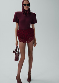 Magda's signature bodysuit features removable padded shoulders, short sleeves, and a fitted body to create her signature silhouette. Ribbed fabric and a round neckline complete the look. Details ID: 177425 Shell 95% Cotton 5% Elastane. Lining 100% Cotton. Sizing This piece fits true to size. We recommend you get your regular size. Model is 180 cm and is wearing a size 34.