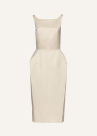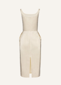 Roundneck hip pad midi dress in cream