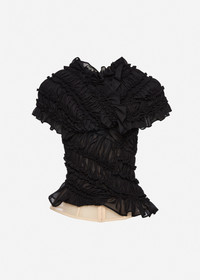 Pre-order: expected to ship by March 30th 2026 A statement blouse crafted from richly ruched panels sewn in varying directions for a sculptural effect. Featuring short sleeves, padded shoulders for added volume, and an asymmetric hem. A structured corset reinforced with crinoline sits underneath to support the silhouette. Details ID: 131526 Shell 100% Cotton Sizing This piece fits true to size. We recommend you get your regular size.