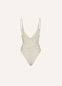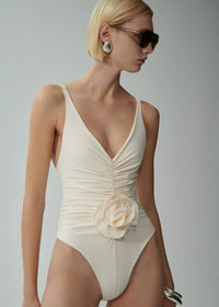 Ruched flower swimsuit in cream