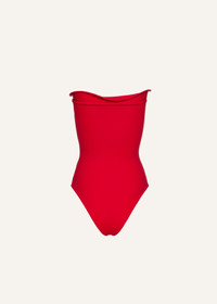 Sculptural rose bustier swimsuit in red