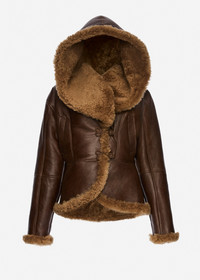 Shearling hooded jacket in dark brown