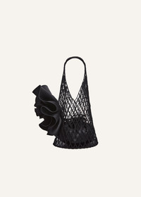 The Devana bag is a tote bag made from large netted crochet using natural fibers, creating the perfect bag for summer. A large satin flower adorns the front of the bag. Small size. Details ID: 606424 Bottom Calf Leather. 75% Cotton 25% Viscose. Flower 100% Silk. Sizing Approximate measurements: 27cm height, 15cm bottom depth