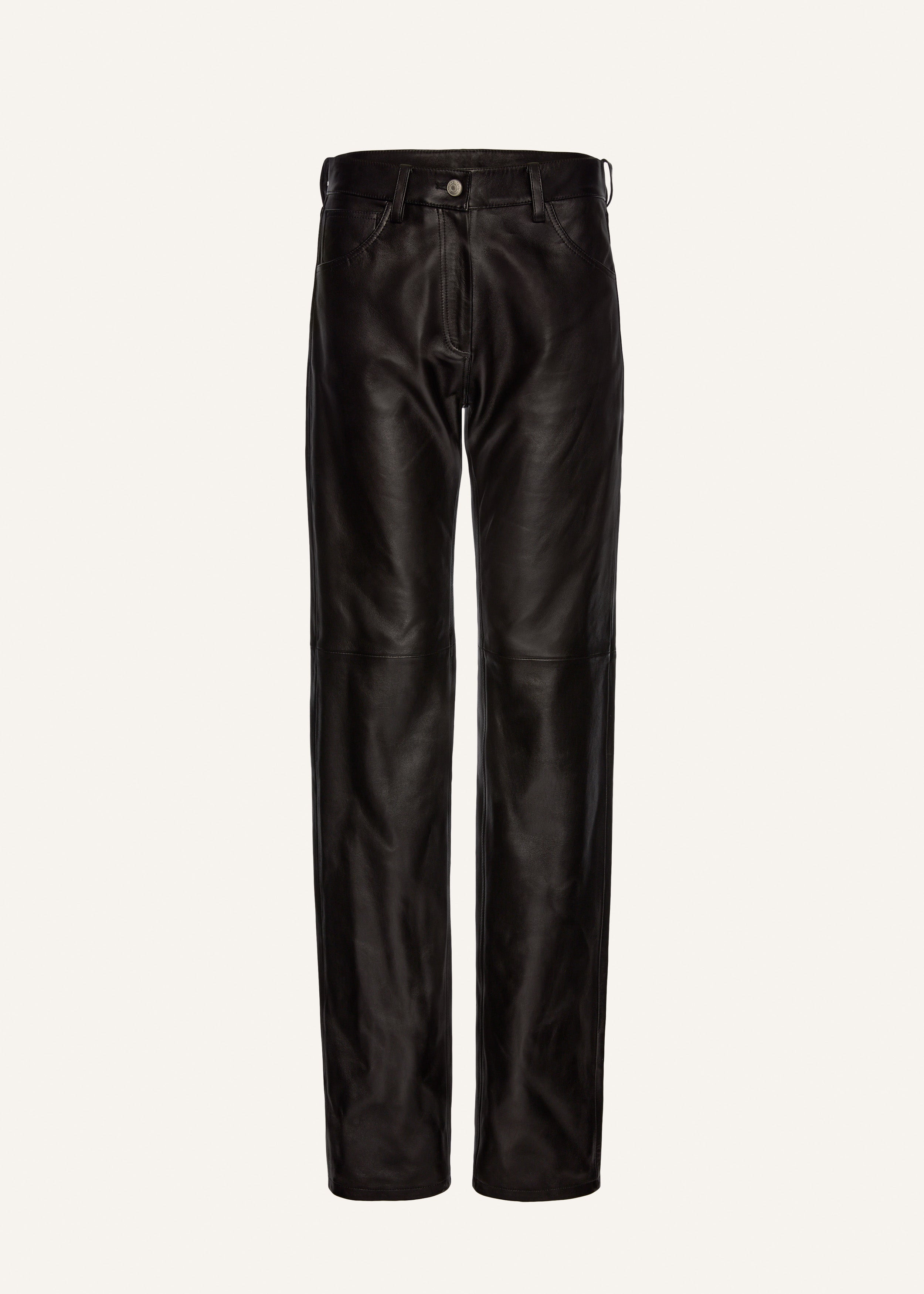 Straight-leg leather pants in black