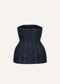 This sculpted corset top is crafted from rigid cotton denim, offering a structured and flattering silhouette. The strapless neckline and contoured panel construction enhance the hourglass shape, while contrast topstitching accentuates the architectural lines. Details ID: 132925 Shell 100% Cotton. Sizing This piece fits true to size. We recommend you get your regular size. Model is 177 cm and is wearing a size 34.