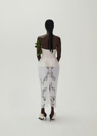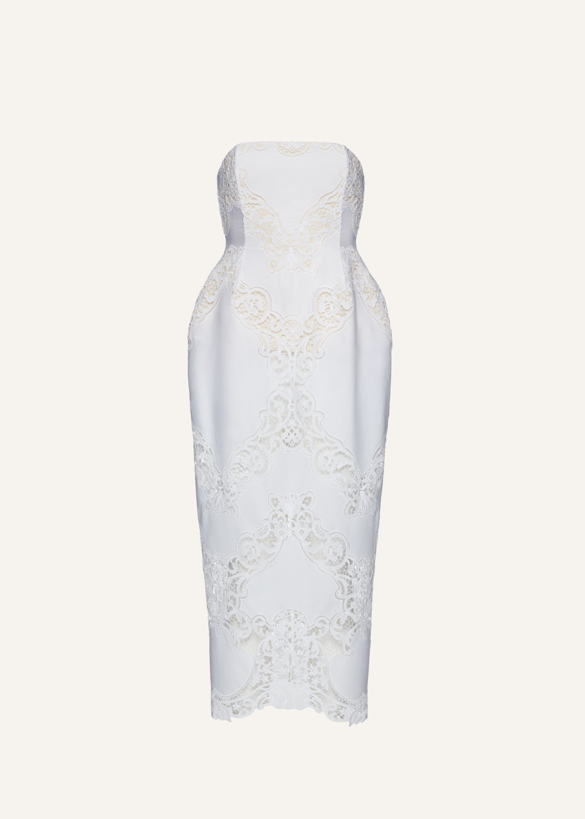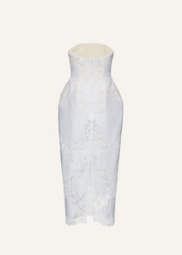 Strapless hourglass lace corset midi dress in white