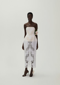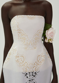 Magda's updated corset silhouette this season features an hourglass shape with defined hips, available in midi dress with a built in corset and back zip. This special version is made from delicate Slavic lace with a cotton underlay. Details ID: 151524 Shell 90% Cotton 10% Polyester. Lining 100% Cotton. Sizing This piece fits true to size. We recommend you get your regular size. Model is 177 cm and is wearing a size 34.