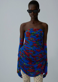 This strapless mini dress is richly ruched along the sides for a dramatic silhouette. The hip area is accentuated with exaggerated padding and additional draped overlays, creating an ultra-feminine shape. The bodice is elasticated for support and features an inner bodysuit for a secure fit. Details ID: 209925 Shell 92% Cupro 8% Elastane Sizing This piece fits true to size. We recommend you get your regular size. Model is 177 cm and is wearing a size 34.