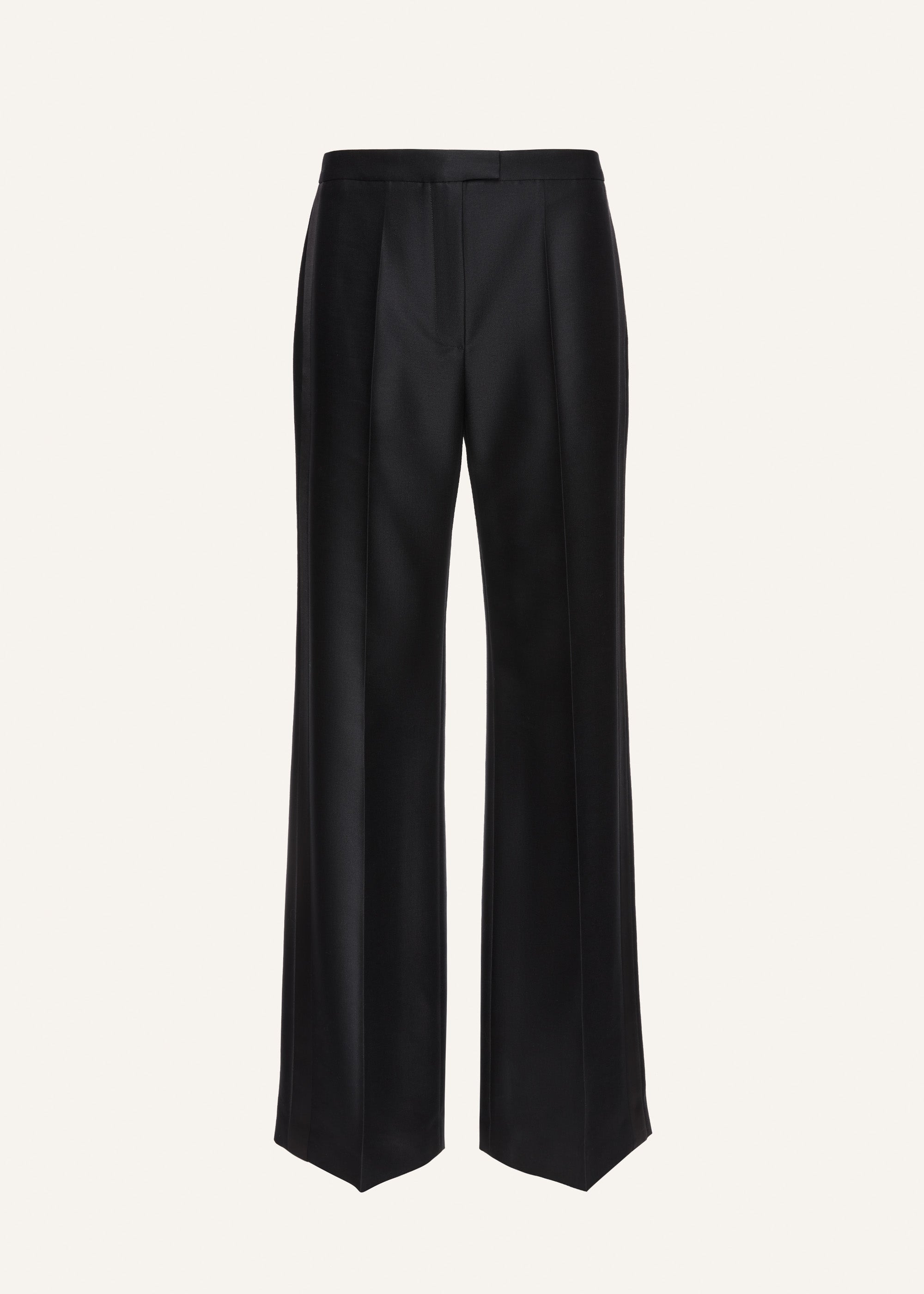 Tailored from wool and silk blend, these straight-leg trousers feature crisp front and back creases, enhanced by tonal side tuxedo stripes. The clean silhouette is complemented by discreet side seam pockets and back welt pockets with button closures. Details ID: 183925 Shell [1] 93% Wool 7% Silk [2] 74% Silk 26% Wool Lining 100% Silk. Sizing This piece fits true to size. We recommend you get your regular size. Model is 177 cm and is wearing a size 34.