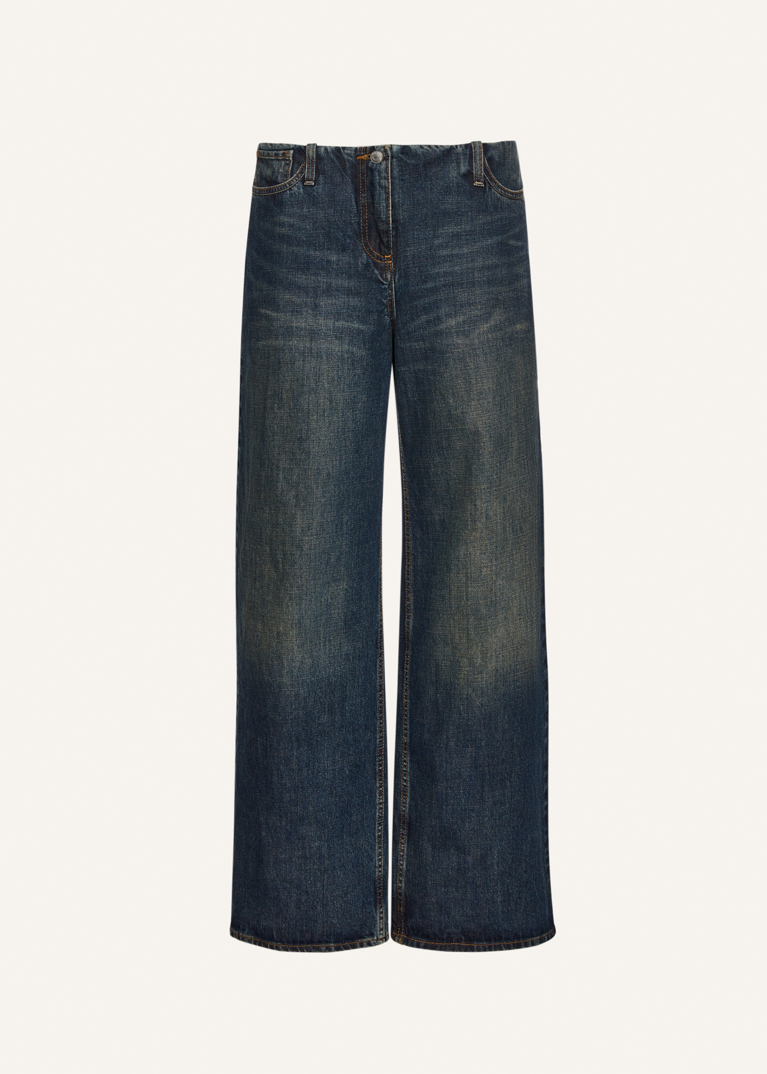 Ultra-low-waist wide-leg denim in dark vintage blue