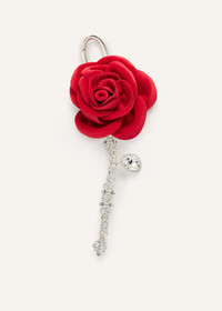 An exceptional keychain the embodies the spirit of Magda Butrym's dreamy DNA. Signature rose is adorned by a silver swirl for a unique blend. Available exclusively at magdabutrym.com and at the flagship boutique. Details ID: 940724 Hypoallergic Plated Brass. Crystals.Silver 925 Material Velvet Sizing Approximate measurements: 16cm drop, flower diameter is 8cm