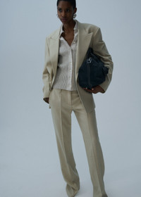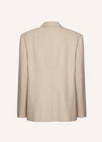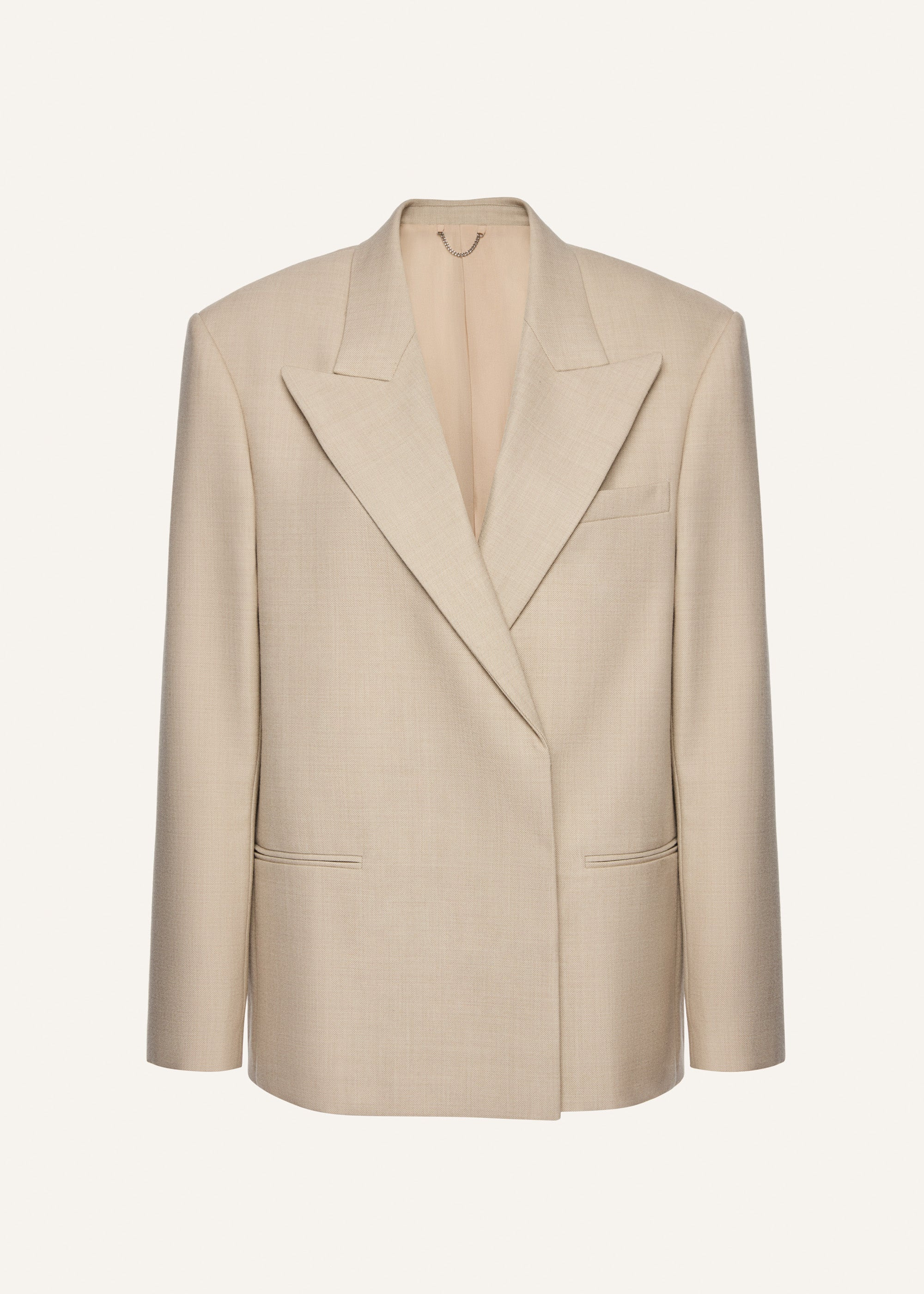 An oversized wool blazer with a modern crossover, buttonless fit and classic lapels. Details ID: 124725 Shell 100% Wool. Lining 100% Silk Sizing This piece fits true to size. We recommend you get your regular size. Model is 180 cm and is wearing a size 34.