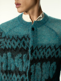 Brushed Effect Mohair Sweater With Misaligned Jacquard Logo. Item Composition: 50% Mohair, 32% Polyamide, 18% Wool Made in Italy