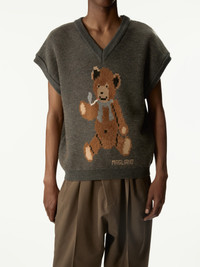 Jacquard-Knit Vest. Oversized Fit. Item Composition: 70% Wool, 30% Polyamide Made in Italy Abdul is 189cm tall and wears a size M