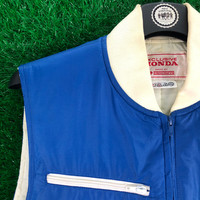 CODE : D9 BRAND : Exclusive Honda VINTAGE : 1990s Condition 7/10 (Vintage used condition) โ ๏ธ Have a 2 hole at shoulder back โ ๏ธ Please refer condition on all photo Size on Tag : 2 (Please refer manual Measurement) Made in Japan 1 Outer Fabric : Nylon (Blue) 2 Outer Fabric : Cotton stretch (White) Lining Fabric : Nylon (Material refer washtag) Sleeveless 3 Pocket Zip up Basic Measurements: Prefer for size S fit to M Chest (Armpit-Armpit) - 52 Length (Armpit down to the Bottom) - 32 Full Length (From Rear Seam down to the Bottom) - 56 ๐ธ Please see the detailed picture first and ask me about this item if you are interested in getting rid of the confusion later.. ๐ Easy to deal.. if you are interested can try for me the offer you want.. if affordable I accept.. Shipping : Worldwide ๐ โ๏ธ Shipped with DHL Express, And you will received the item within a week.. (Remote area delivery add $30) Thank You
