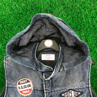 CODE : D9 BRAND : DS Club VINTAGE : 1990s Condition 7/10 (Good used condition) โ ๏ธ Please refer condition on all photo Size on Tag : L (Please refer manual Measurement) Made in China Outer Fabric : Denim Lining Fabric : Nylon (Material refer washtag) Sleeveless 2 Pocket Snap button up Hoodie can remove Basic Measurements: Prefer for size L Chest (Armpit-Armpit) - 56 Length (Armpit down to the Bottom) - 35 Full Length (From Rear Seam down to the Bottom) - 61 ๐ธ Please see the detailed picture first and ask me about this item if you are interested in getting rid of the confusion later.. ๐ Easy to deal.. if you are interested can try for me the offer you want.. if affordable I accept.. Shipping : Worldwide ๐ โ๏ธ Shipped with DHL Express, And you will received the item within a week.. (Remote area delivery add $30) Thank You
