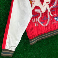 CODE : Personal Collection BRAND : Avirex VINTAGE : 1990s Condition 7/10 (Good used condition) ⚠️ Have stain at sleeve left ⚠️ Please refer condition on all photo Size on Tag : F (Please refer manual Measurement) Made in China 1 Outside Fabric : Satin (Red) 2 Outside Fabric : Quilted Satin (Purple) (Material refer washtag) Long Sleeve 2 Pocket Zip up Basic Measurements: Prefer for size XXS Chest (Armpit-Armpit) - 44 Length (Armpit down to the Bottom) - 32 Full Length (From Rear Seam down to the Bottom) - 56 ⏫️ I prefer sizing based on measurement internasional standert size 📸 Please see the detailed picture first and ask me about this item if you are interested in getting rid of the confusion later.. 🎁 Easy to deal.. if you are interested can try for me the offer you want.. if affordable I accept.. Shipping : Worldwide 🌍 ✈️ Shipped with DHL Express, And you will received the item within a week.. (Remote area delivery add $30) Thank You