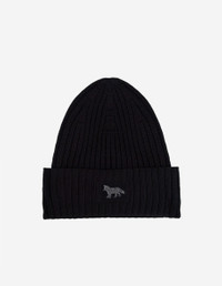 DETAILS Merino wool and cotton beanie with a Tonal Baby Fox embroidered patch on the cuff. - Beanie in fine rib knit blending extra-fine merino wool and cotton - Tonal embroidered Baby Fox patch on the cuff PW06101KT1174-P199 SIZE & CUT Sizing: UNISEX MATERIAL 45% COTTON, 55% WOOL TRACEABILITY Made in China
