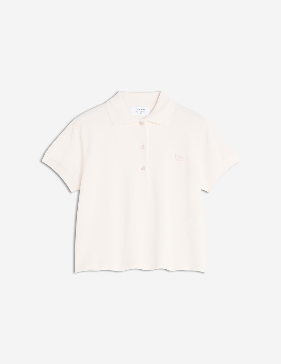 DETAILS Cotton pique polo shirt with short sleeves. Cropped fit with a Tonal Baby Fox embroidered patch. - Cotton pique polo - Organic cotton - Cropped fit - Short sleeves - Polo collar with button closure - Tonal Baby Fox emboidered patch on the chest PW00204KP0001-0306 SIZE & CUT Cut: CROPPED Sizing: WOMEN The female model is 5.7 and is wearing size S MATERIAL 100% COTTON TRACEABILITY Made in Portugal