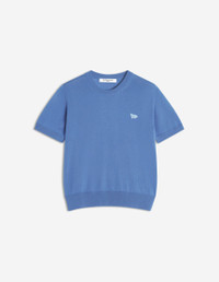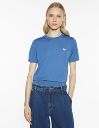 DETAILS Extra-fine merino wool jumper with short sleeves. Regular fit, Tonal Baby Fox embroidered patch. - Plain extra-fine Merino wool jumper - Regular fit - Crew neck - Short sleeves - Ribbing at neckline, sleeves and hem - Fine gauge knit - Tonal Baby Fox patch embroidered on the chest OW00807KT1181-0330 SIZE & CUT Cut: REGULAR Sizing: WOMEN The female model is 5.7 and is wearing size S MATERIAL 100% WOOL TRACEABILITY Made in Portugal