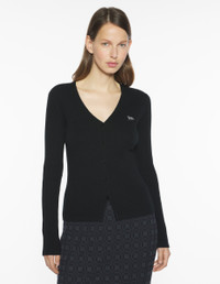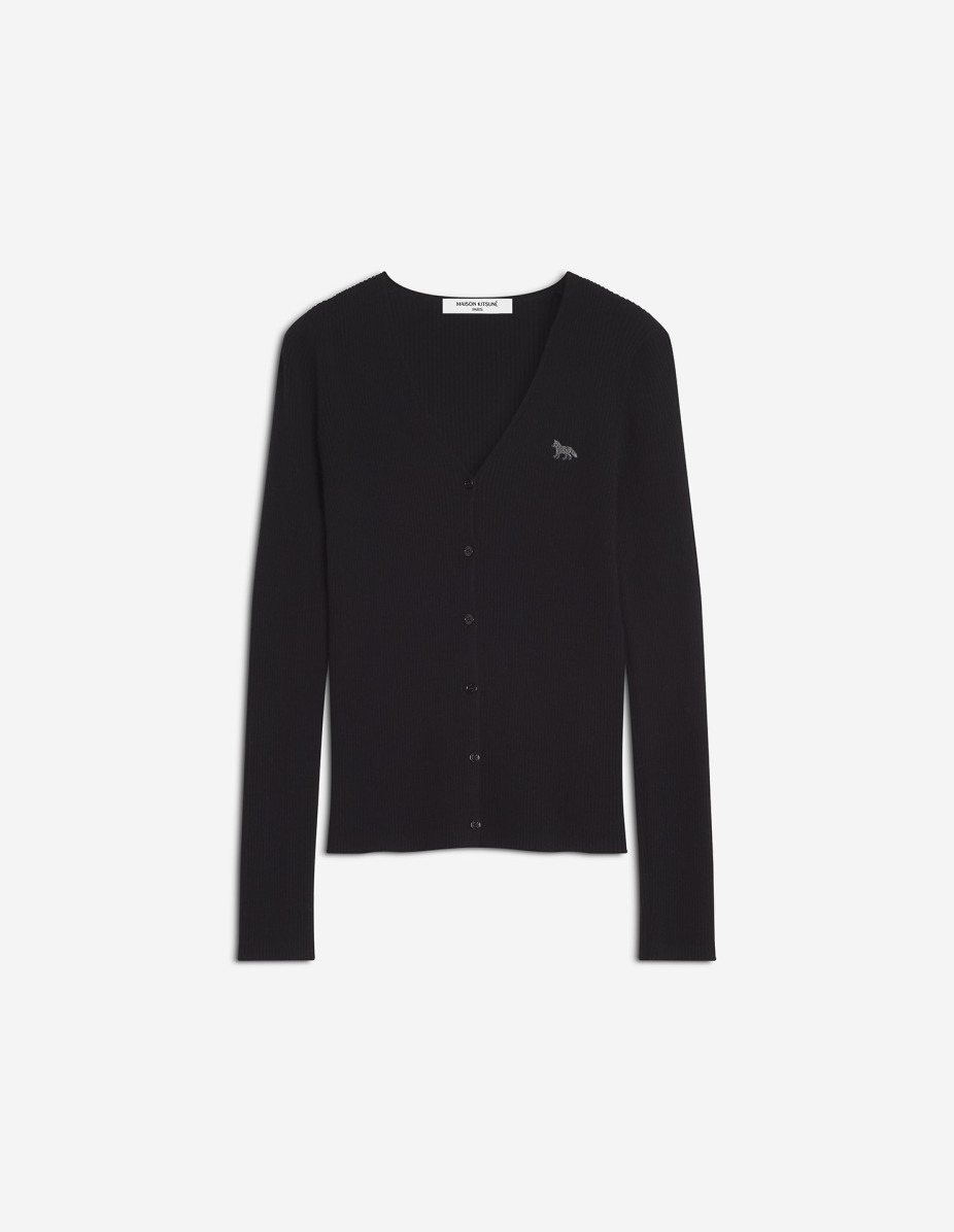 DETAILS Fine-rib wool and cotton cardigan. Fitted fit with Tonal Baby Fox embroidered patch. - Extra-fine merino wool and cotton cardigan in fine rib knit - Fitted fit - Maison Kitsune engraved buttons - Long sleeves - Ribbing at the neckline, cuffs and waist - Tonal Baby Fox embroidered patch on the chest PW00513KT1155-P199 SIZE & CUT Cut: FITTED Sizing: WOMEN The female model is 5.7 and is wearing size S MATERIAL 45% COTTON, 55% WOOL TRACEABILITY Made in China