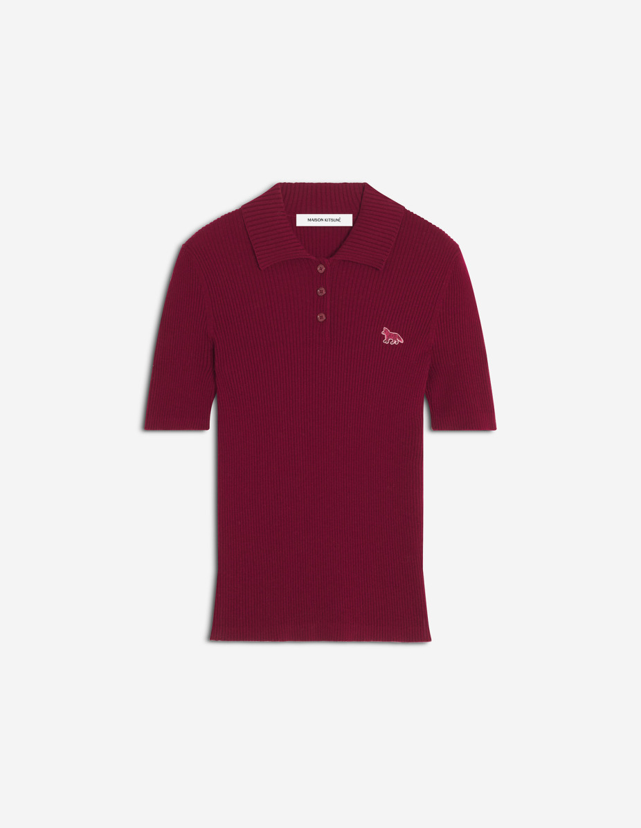 DETAILS Fine rib wool-cotton polo with short sleeves. Fitted, Tonal Baby Fox embroidered patch. - Wool and cotton fine-rib polo - Fitted - Short sleeves - Polo collar with button placket - Tonal embroidered Baby Fox patch at the chest PW00206KT1155-0143 SIZE & CUT Cut: FITTED Sizing: WOMEN The female model is 5.7 and is wearing size S MATERIAL 45% COTTON, 55% WOOL TRACEABILITY Made in China