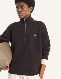 DETAILS Half zip sweatshirt in cotton casual fleece. Comfort fit with Baby Fox embroidered patch on the chest. - Half-zip sweatshirt in cotton casual fleece (440g) - Comfort fit - High neck - Half-zip closure with Profile Fox engraved zip puller - Tonal Baby Fox embroidered patch on the chest - Ribbing at the neckline, cuffs, and bottom MW00304KM0341-0423 SIZE & CUT Cut: COMFORT Sizing: WOMEN The female model is 5.7 tall and wears a size S MATERIAL Main Material: 100% ORGANIC COTTON, RIB: 2% ELASTANE, 98% ORGANIC COTTON TRACEABILITY Made in Portugal