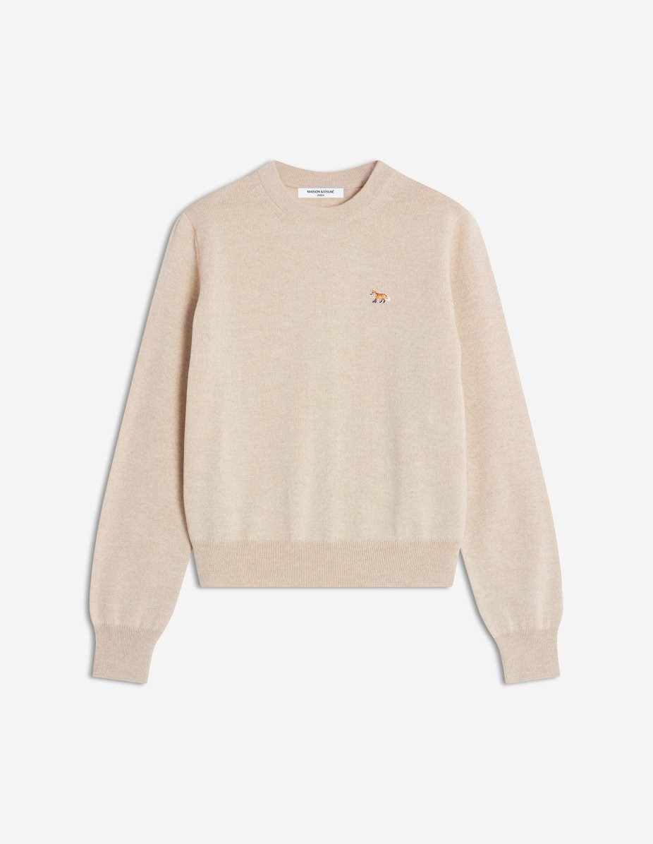 DETAILS Extra-fine merino wool jumper. Regular fit with Baby Fox embroidered patch. - Plain extra-fine merino wool jumper - Regular fit - Crew neck - Long sleeves - Rib finishing at the neckline, cuffs and waist - Fine gauge knit - Baby Fox embroidered patch on the chest PW00801KT1181-H218 SIZE & CUT Cut: REGULAR Sizing: WOMEN The female model is 5.7 and is wearing size S MATERIAL 100% MERINOS EXTRAFINE WOOL TRACEABILITY Made in Portugal