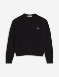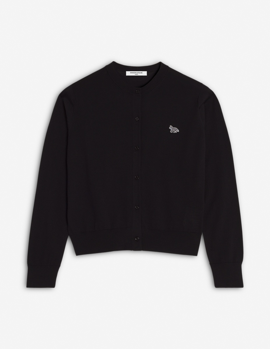 DETAILS Fine merino wool cardigan. Regular cut with embroidered Baby Fox patch. - Fine merino wool cardigan - Regular cut - Crewneck - Tone-on-tone Baby Fox patch embroidered on the chest - Engraved button closure - Long sleeves - Ribbing at the neckline, cuffs, and waist MW00507KT1036-P199 SIZE & CUT Cut: REGULAR Sizing: WOMEN MATERIAL 100% MERINO WOOL TRACEABILITY Made in Portugal
