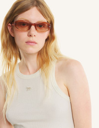 DETAILS Tank top in refined rib. Fitted cut with Baby Fox embroidered patch on the chest. - Refined rib tank top - Fitted cut - American neckline - Ribbing at the neckline and armholes - Tonal Baby Fox embroidered patch on the chest OW00604KJ0134-0383 SIZE & CUT Cut: FITTED Sizing: WOMEN The female model is 5.8 tall and wears a size S MATERIAL 32% COTTON, 4% ELASTANE, 64% LYOCELL TRACEABILITY Made in Portugal