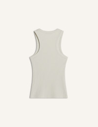 DETAILS Tank top in refined rib. Fitted cut with Baby Fox embroidered patch on the chest. - Refined rib tank top - Fitted cut - American neckline - Ribbing at the neckline and armholes - Tonal Baby Fox embroidered patch on the chest OW00604KJ0134-0477 SIZE & CUT Cut: FITTED Sizing: WOMEN The female model is 5.7 tall and wears a size S MATERIAL 32% COTTON, 4% ELASTANE, 64% LYOCELL TRACEABILITY Made in Portugal