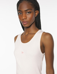 DETAILS Stretch ribbed cotton tank top. Fitted fit with Tonal Baby Fox embroidered patch. - Stretch ribbed cotton tank top - Organic cotton - Fitted fit - Scoop neckline - Tonal Baby Fox embroidered patch at the chest MW00121KA0033-0306 SIZE & CUT Cut: FITTED Sizing: WOMEN The female model is 5.7 and is wearing size S MATERIAL 100% COTTON TRACEABILITY Made in Portugal