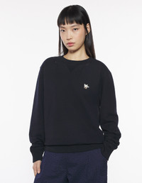 DETAILS Cafe Kitsune collection long sleeve fleece sweatshirt. Regular cut with embroidered Barista Fox patch. - Plain fleece sweatshirt - Regular cut - Crewneck with modestie - Barista Fox patch embroidered on the chest - Long sleeves - Ribbing at the neckline, cuffs, and waist - Plain back - Cafe Kitsune Collection OU00301KM0330-P199 SIZE & CUT Cut: REGULAR Sizing: UNISEX The female model is 5 and is wearing size S MATERIAL 100% COTTON TRACEABILITY Made in Portugal