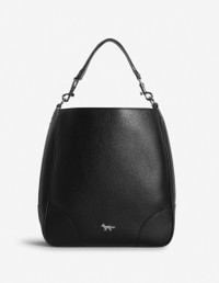 DETAILS Hobo Boogie bag in grained leather. - Hobo bag in grained leather - Handheld and shoulder wear - Removable shoulder strap with carabiner hooks - Topstitched leather panels - Metal Profile Fox and rivets - Silver embossed Maison Kitsune Paris logo at the back - Snap closure - Lining and interior pocket in twill - Jacron with Maison Kitsune logo on the interior pocket - Dimensions: 34 x 32 x 13 cm OW05135LR0024-P199 SIZE & CUT Sizing: WOMEN MATERIAL Exterior: 100% BOVINE LEATHER, Interior: 100% COTTON TRACEABILITY Made in Morocco