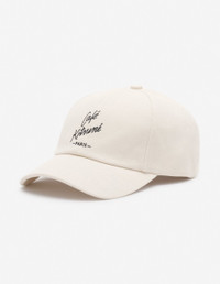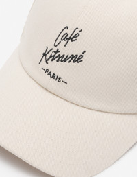 DETAILS Cotton twill cap with embroidered Cafe Kitsune Paris logo. - Plain cotton twill cap - Six-panel cap - Curved brim - Adjustable metal buckle at the back - Embroidered Cafe Kitsune Paris logo at the front - Cafe Kitsune collection CKNU06102WW0096-P709 SIZE & CUT Sizing: UNISEX MATERIAL 100% COTTON TRACEABILITY Made in China