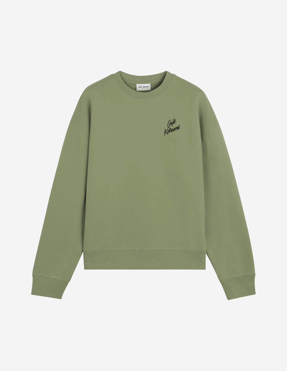 DETAILS Soft fleece sweatshirt with long sleeves. Relaxed fit with embroidered Cafe Kitsune Handwriting signature on the chest. - Soft plain fleece sweatshirt - Relaxed fit - Crew neck - Rib finishing at the neckline, cuffs and hem - Cafe Kitsune Handwriting signature embroidered on the chest PU00301KM0330-0079 SIZE & CUT Cut: RELAX Sizing: UNISEX The male model is 6.1 and is wearing size M MATERIAL 100% COTTON TRACEABILITY Made in Portugal