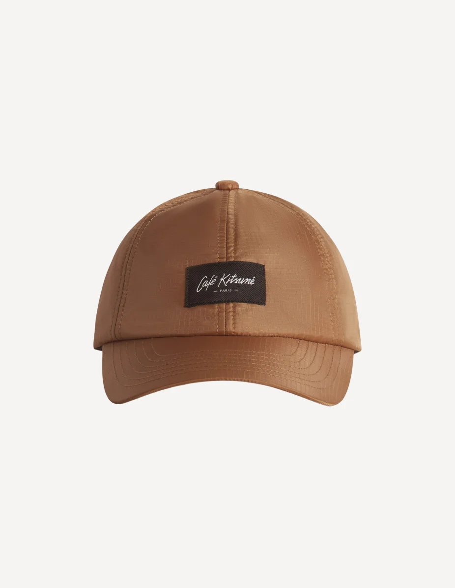 DETAILS Lightweight ripstop Urban Nomadism baseball cap, Cafe Kitsune signature. - Lightweight ripstop cap - Six-panel construction - Curved brim - Cafe Kitsune label stitched at the front - Adjustable buckle at the back PU06101WQ4060-0344 SIZE & CUT Sizing: UNISEX MATERIAL 100% POLYAMIDE TRACEABILITY Made in China