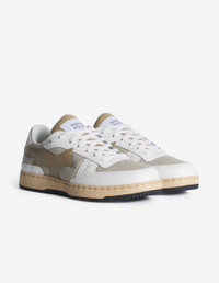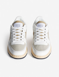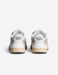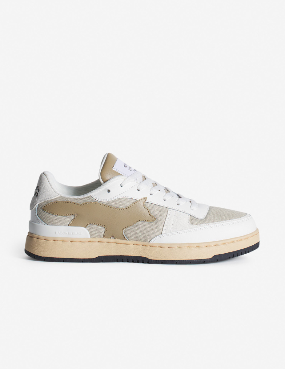 DETAILS Chiru Trainers in canvas, smooth leather and suede. Profile fox on the side and embossed Maison Kitsune Handwriting signature. - Chiru Trainers in smooth and suede leather and canvas - Tonal leather Profile Fox topstitched on the sides - Embossed Maison Kitsune Handwriting signature at the back - Woven Maison Kitsune Paris label on the tongue - Molded rubber outsole with signature Profile Fox - Lace-up closure MM04804OF0004-0365 SIZE & CUT Sizing: MEN The female model is 5.7 and is wearing size 40 MATERIAL Lining: 40% VINYL ETHYLENE ACETATE, 50% POLYESTER, 10% POLYURETHANE, Upper: 55% BOVINE LEATHER, 40% COTTON, 5% CALF LEATHER, Outsole: 98% RUBBER, 2% THERMOPLASTIC POLYURETHANE, Insole: 40% VINYL ETHYLENE ACETATE, 50% POLYESTER, 10% POLYURETHANE TRACEABILITY Made in China