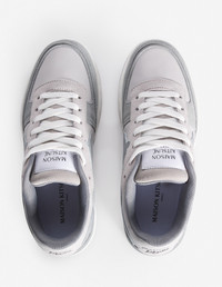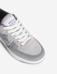 DETAILS Chiru trainers in leather. Sporty model with emblematic Maison Kitsune Maison Kitsune Handwriting signature. - Chiru leather trainers - Smooth, grain, and suede leather model - Round toe - Lace-up closure - Lace finishes with Maison Kitsune Handwriting signature print - Maison Kitsune logo woven label on the tongue - Topstitched leather Profile Fox on the sides - Maison Kitsune Handwriting signature in relief on the side - Maison Kitsune Handwriting signature patch embossed at the back - Rubber outsole - Technical fabric lining and insole MW04804LR0034-0278 SIZE & CUT Sizing: WOMEN MATERIAL Upper: 48% BOVINE LEATHER, 52% POLYESTER, Lining: 40% VINYL ETHYLENE ACETATE, 50% POLYESTER, 10% POLYURETHANE, Outsole: 98% RUBBER, 2% THERMOPLASTIC POLYURETHANE, Insole: 40% VINYL ETHYLENE ACETATE, 50% POLYESTER, 10% POLYURETHANE TRACEABILITY Made in China