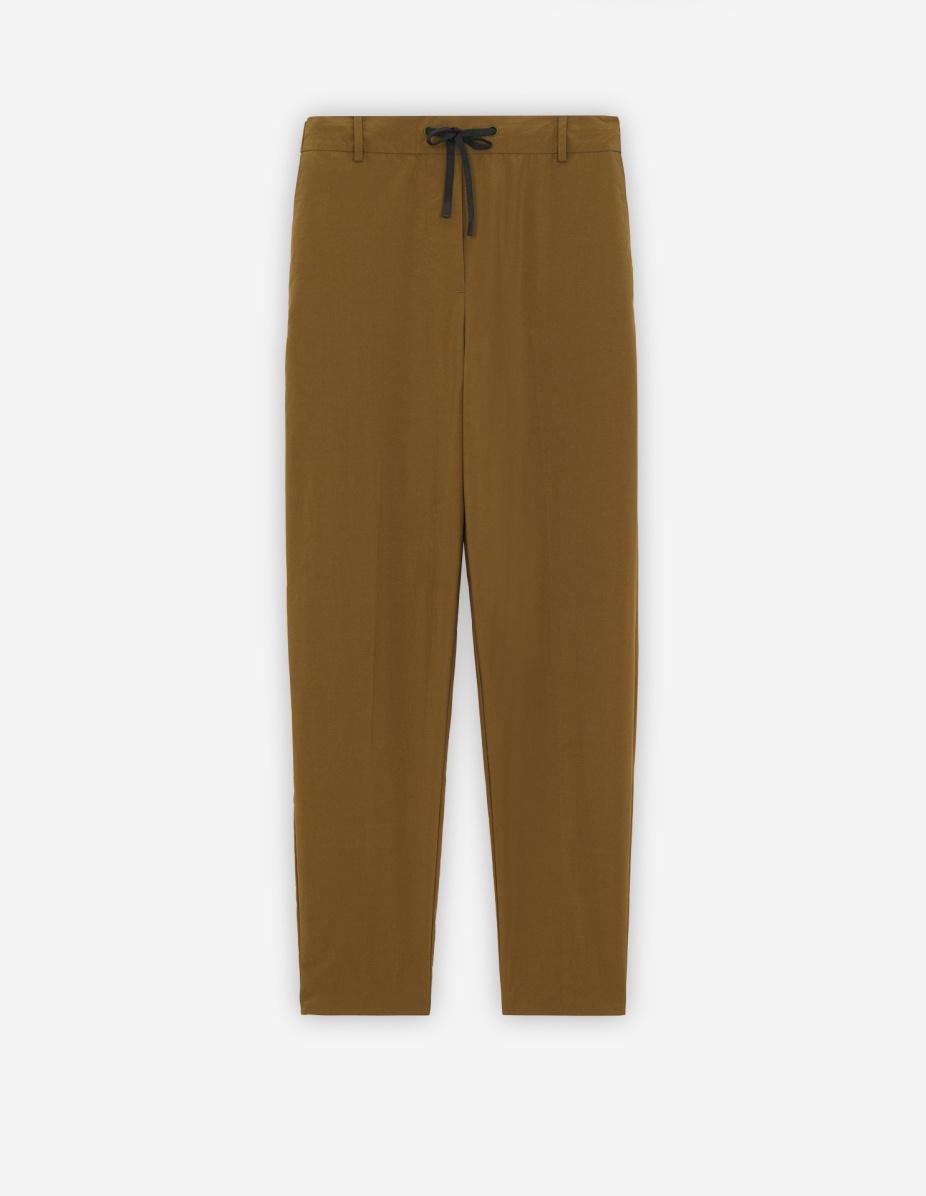 DETAILS Straight-cut City pants. - Straight leg - Waistband with belt loops - Elasticated waistband at the back - Front drawstring and hidden faux zipper - Slash front pockets - Back pockets with embroidered “Maison Kitsune” - The male model is 6 and is wearing size M Straight-cut City pants. - Straight leg - Waistband with belt loops - Elasticated waistband at the back - Front drawstring and hidden faux zipper - Slash front pockets - Back pockets with embroidered “Maison Kitsune” - The male model is 6 and is wearing size M HM01111WQ0010-P360 SIZE & CUT Sizing: MEN MATERIAL Main Material: 100% POLYAMIDE, Lining: 100% COTTON TRACEABILITY Made in Romania