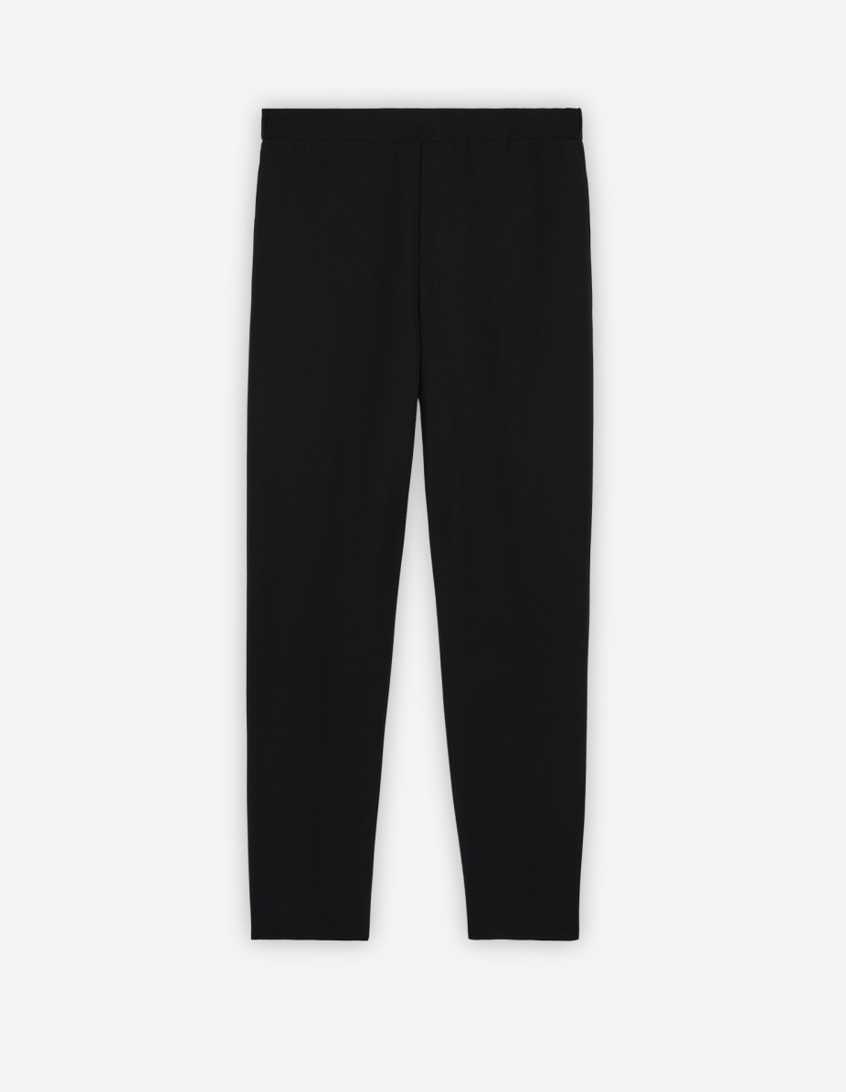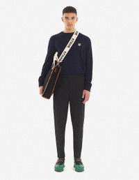 DETAILS Straight-cut cotton city pants. - Cotton-blend pants - Straight cut and relaxed fit - Waistband - Faux hidden front zipper - Elasticated waistband at the back - Side seam pockets - Slash back pockets with tonal embroidered “Maison Kitsune” JM01111WT0011-P198 SIZE & CUT Cut: CLASSIC Sizing: MEN The male model is 6 and is wearing size M MATERIAL Main Material: 55% POLYESTER, 45% VIRGIN WOOL, Lining: 100% COTTON TRACEABILITY Made in Romania
