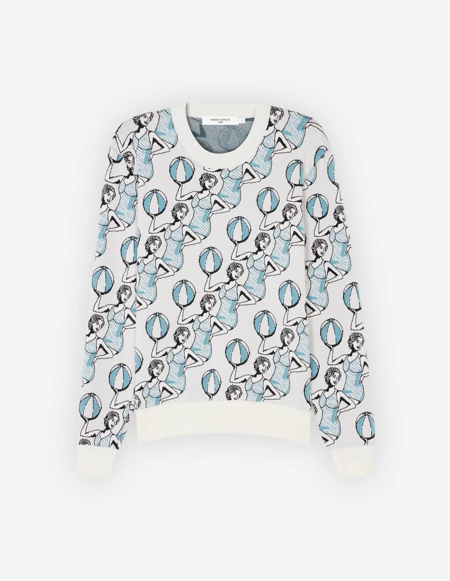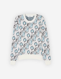 DETAILS Collection signed Maison Kitsune and Hotel Olympia. Viscose jumper. Comfort cut with “Dancing girls” print. - Viscose jumper - Comfort cut - Long sleeves - Crewneck - Contrast ribbing at the neckline, cuffs, and waist - “Dancing girls” print - Maison Kitsune x Olympia Le Tan KM00533KT1082-M100 SIZE & CUT Cut: COMFORT Sizing: MEN The male model is 6 and is wearing size M MATERIAL Main Material: 30% POLYAMIDE, 70% VISCOSE TRACEABILITY Made in Portugal