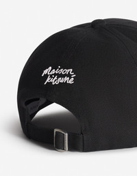 DETAILS Cotton twill cap with embroidered Double Bold Fox Head patches and Maison Kitsune Handwriting signature. - Cotton twill cap - Six-panel cap - Curved brim - Adjustable metal buckle at the back with engraved Maison Kitsune and Profile Fox - Double Bold Fox Head embroidered on the side - Maison Kitsune Handwriting signature embroidery at the back OM611CFWW0096-P190 SIZE & CUT Sizing: UNISEX MATERIAL 100% COTTON TRACEABILITY Made in China
