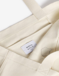DETAILS Tote bag in cotton canvas with embroidered Double Bold Fox Head patches and Maison Kitsune Handwriting signature. - Tote bag in thick, plain cotton canvas - Two large handles for hand and shoulder carry - Embroidered Double Bold Fox Head patches on the front - Embroidered Handwriting Maison Kitsune signature at the back - Interior patch pocket - Woven label with contrasted Maison Kitsune Paris logo on the inside pocket - Dimensions: 43 x 32.5 cm OW511CFWW0096-P700 SIZE & CUT Sizing: UNISEX MATERIAL 100% COTTON TRACEABILITY Made in China