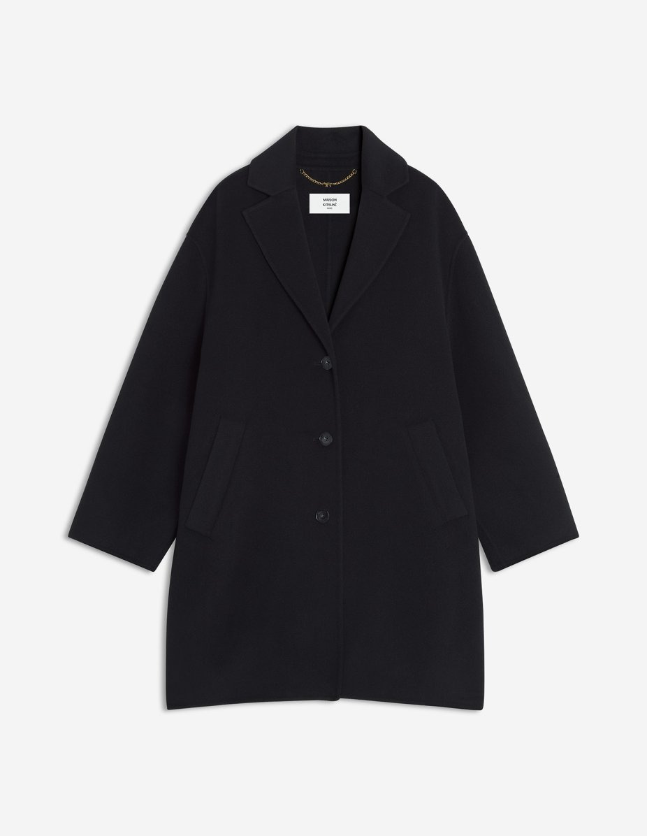 DETAILS Double-face wool coat. - Double face wool coat - Comfort fit with rounded silhouette and shoulder line - Tailored collar - Maison Kitsune engraved simple button closure - Two side welt pockets - Profile Fox interior chain at the collar PW02211WQ4067-P199 SIZE & CUT Cut: COMFORT Sizing: WOMEN The female model is 5.7 and is wearing size 36 MATERIAL Main Material: 100% WOOL, Pocket lining: 100% POLYESTER TRACEABILITY Made in China