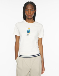 DETAILS T-shirt in cotton jersey (180g) with short sleeves. Regular fit with Dressed Fox print on the chest. - T-shirt in cotton jersey (180g) - Organic cotton - Regular fit - Short sleeves - Crew neck with rib finishing - Dressed Fox print on the middle chest PW00119KJ7026-0306 SIZE & CUT Cut: REGULAR Sizing: WOMEN The female model is 5.7 and is wearing size S MATERIAL 100% COTTON TRACEABILITY Made in Portugal